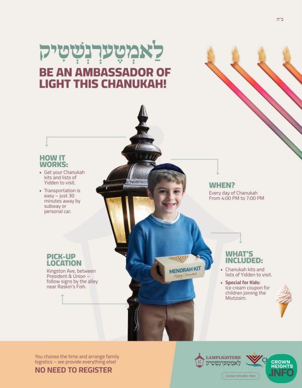 Building on the success of Chabad in Sheepshead Bay, which has achieved great success in orchestrating mivtzoim for many during major Yomim Tovim and bringing the Yomim Tovim experience to thousands of Yidden, we are excited to announce a new initiative aimed at enabling Crown Heights families to become the Rebbe’s Shliach-ambassadors of light. This effort seeks to illuminate the darkness and bring the joy of Yomim Tovim to those Yidden who, unfortunately, were not brought up with it.