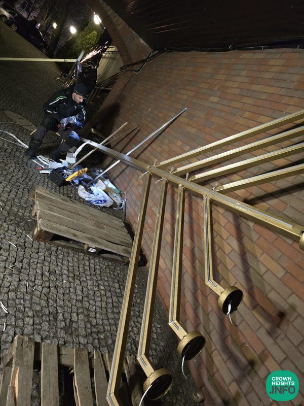 After two years of dark streets during Chanukah, this year was different. The streetlights in Kharkiv were finally turned back on, and the opportunity to place a large menorah on Sumskaya Street in front of the Opera Theater was one that couldn’t be missed. Workers quickly began constructing the new menorah, which was completed late Tuesday night, just before Chanukah began.