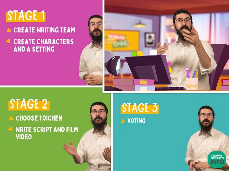 It starts with your imagination. You’ll form a team with friends or family, brainstorm characters and a setting, and dive into the Rebbe’s sichos to find the perfect message to share. From there, you’ll work together to write your script and record a short video explaining your story.