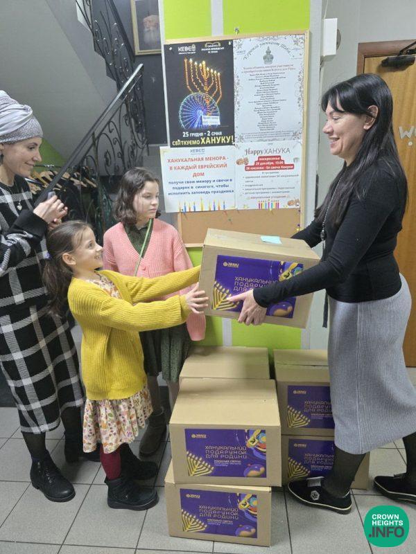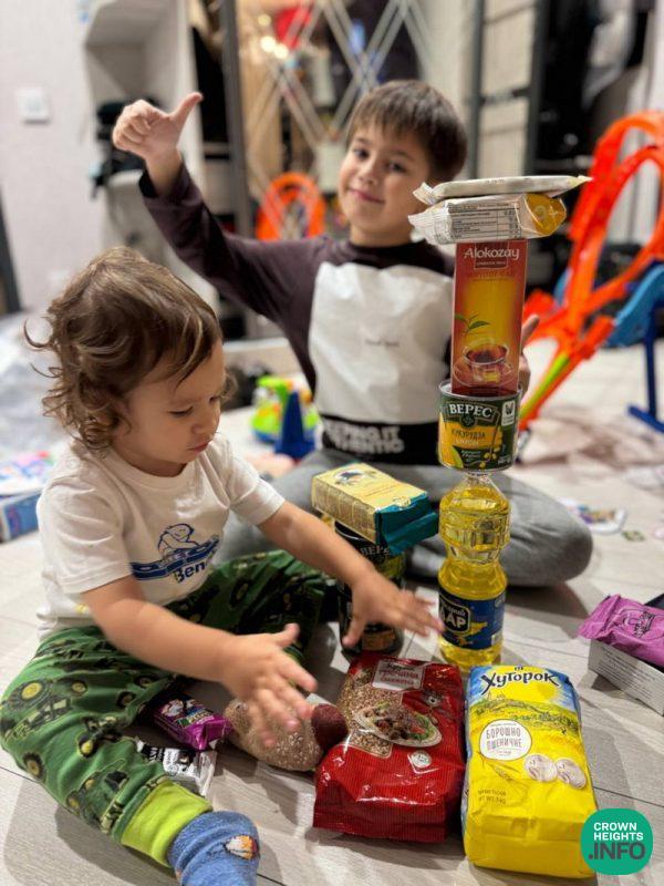For Chanukah, the aid packages included special holiday items such as menorahs and candles, dreidels, educational materials, and children’s games. The food packages contained essential items such as flour, oil, shelf-stable milk, pasta, rice, baked goods, natural juices, and assorted sweets. Some of these products are locally produced in Ukraine under the strict supervision of the Ukraine Kashrut Committee (UK), led by Rabbi Pinchas Vishedsky, one of Kyiv’s prominent rabbis.