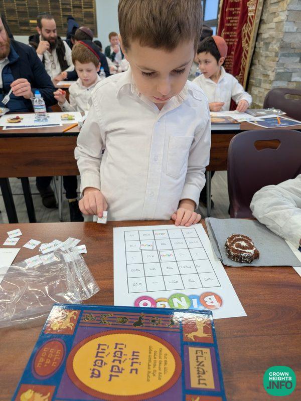Adding to the excitement, the boys and fathers played a Bingo game using words and prefixes from the Chumash. The Siyum ended with the boys decorating custom covers for their Chumashim with their fathers.