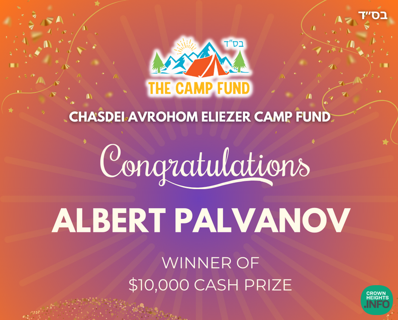 The Chasdei Avrohom Eliezer Camp Fund has announced the winner of this year’s $10,000 raffle. Congratulations to Albert Palvanov.