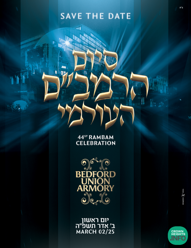 In a significant announcement for Anash and Temimim worldwide, the International Rambam Celebration Committee has released for publication that the 44th completion of the daily Rambam study cycle will be celebrated at the historic Bedford Union Armory – Crown Heights, Brooklyn, on Sunday, 2 Adar 5785 (March 2, 2025).
