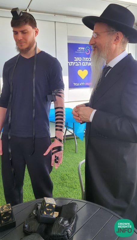 This blessed effort reached its climax this morning when the Chief Rabbi visited Sasha. During the visit, Sasha had the opportunity to don tefillin for the first time. As a special gift from the Jewish community, he received an elegant pair of tefillin and a Chitat book for protection. The eyes of all present filled with tears of emotion, especially those of his dear mother, who sanctified G-d’s name with her unwavering faith and trust throughout this difficult period. Along with her family, she took significant steps in strengthening their observance of Torah and mitzvot, and now Sasha has joined this journey with the moving act of putting on tefillin.