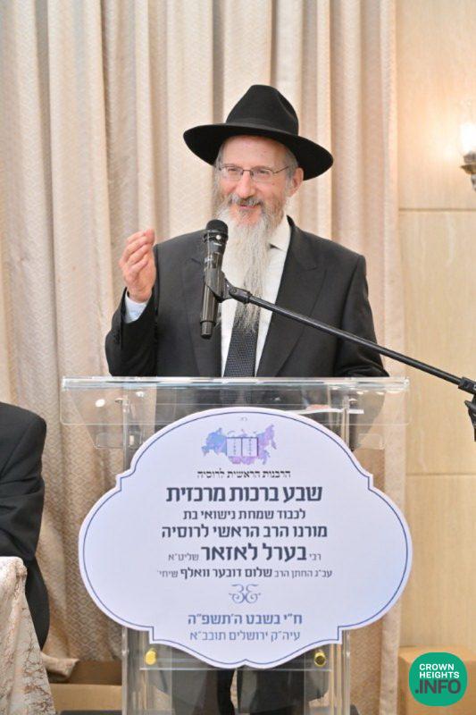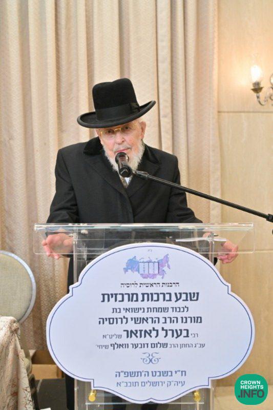 During the days preceding the wedding, the Chief Rabbi of Russia Shlita was invited to the homes of the great and esteemed Rabbanim, to bless and be blessed before the great celebration, and to receive warm greetings from Russian Jewry. During these visits, the Rabbanim expressed an interest in the thriving activity, and encouraged the continued revival of Russian Jewry, led by the Chief Rabbi Shlita and hundreds of devoted rabbis and emissaries.