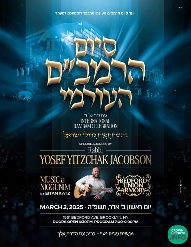 The International Rambam Celebration Committee has announced that renowned speaker Rabbi YY Jacobson will be the guest speaker at the 44th Siyum HaRambam, set to take place on Sunday, 2 Adar 5785 (March 2, 2025), at the Bedford Union Armory in Crown Heights, Brooklyn.