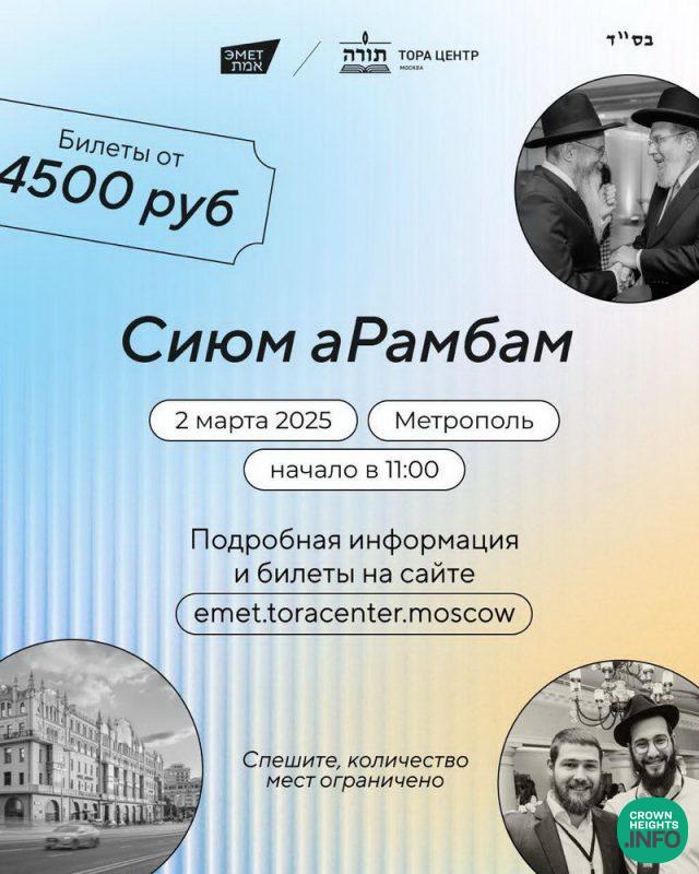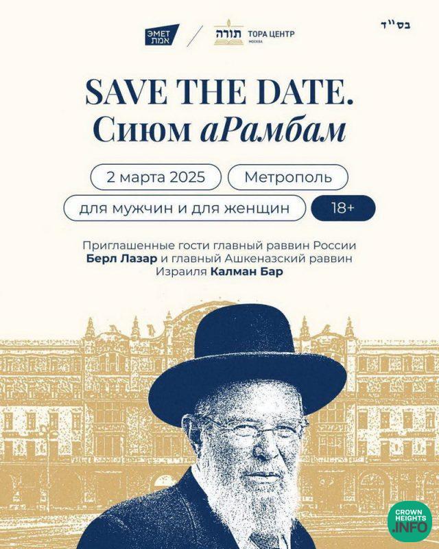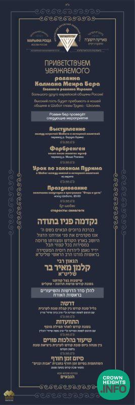 The guest will spend Shabbso Kodesh Parshas Truma, Shkalim and Rosh Chodesh Adar in the main hall of the central “Marina Roshcha” shul, and large notices that have already been posted on behalf of the Gabbaim detailing the series of sermons and lectures that will be held during Shabbos with the participation of hundreds of people.