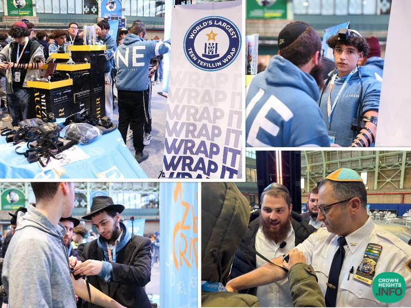 David was one of 1,241 teens who made history on the first morning of the CTeen Shabbaton. At the CTeen Mitzvah Stand in the Bedford Armory, teens wrapped tefillin at record speed, guided by fellow teens, shluchim, and even some unexpected guests.