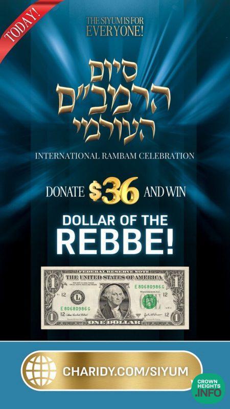 At this Siyum, whoever contributes $36 dollars or more will go into a raffle to win a dollar from the Rebbe!