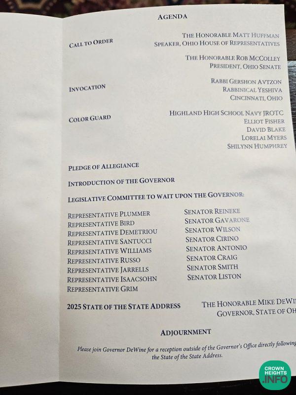 Every year, Mr. Mike Dewine – the Governor of the state of Ohio – gives his “State of the State” address in which he outlines his priorities for the new year. It is attended by all elected officials of the state as well as the justices of the Ohio Supreme Court and watched by thousands across the state. This year, the Governor’s office reached out to Rabbi Gershon Avtzon – Cincinnati, Ohio – to give the opening prayer.
