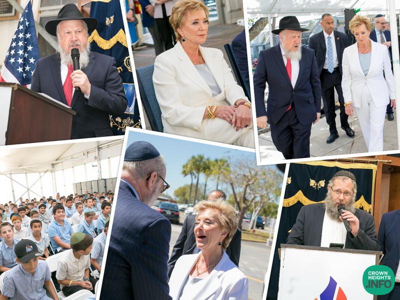 US Secretary of Education Linda McMahon paid a historic visit to Lubavitch Educational Center in Miami on Tuesday afternoon, just two weeks after taking office, speaking to over 400 of the school’s students and staff members and visiting some of the preschool classrooms. It was her first trip to a Jewish school.