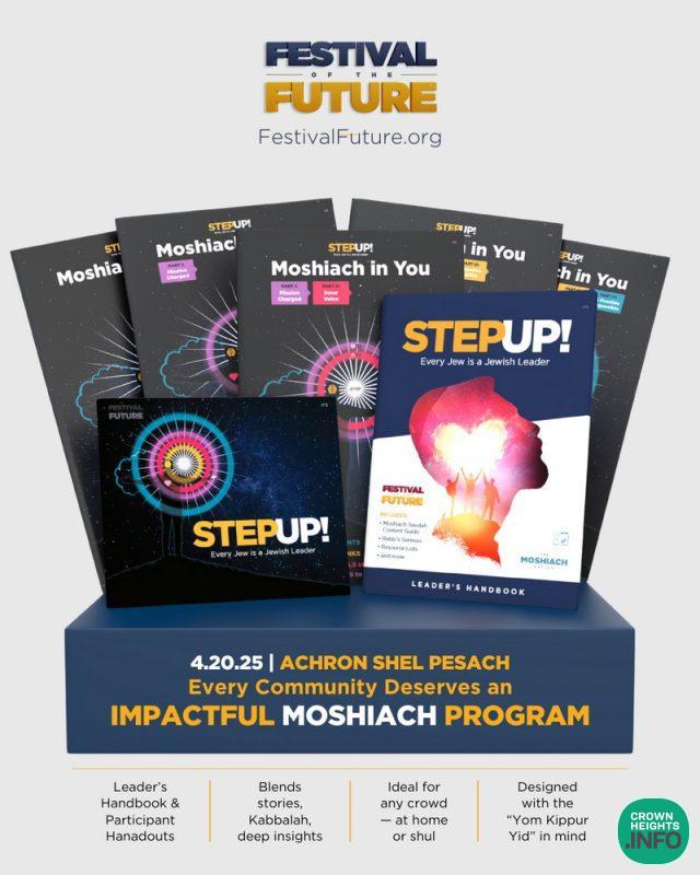 After the Festival of the Future program launched at four hundred and ten Chabad Houses last year, hundreds of shluchim worldwide are gearing up to host the revamped Festival of the Future’s meaningful, day-long Acharon Shel Pesach program exploring a new theme of “Step Up!.” This year’s theme is more relevant than ever and is bound to resonate with the hearts and minds of all participants.