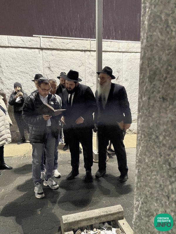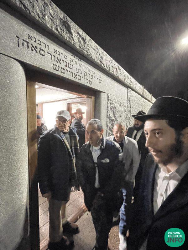 On their way in, Sharabi encountered Jerusalem Mayor Moshe Lion, who was also visiting the Ohel that evening. The two embraced each other and wished each other success in their efforts to advocate for the Jewish people.