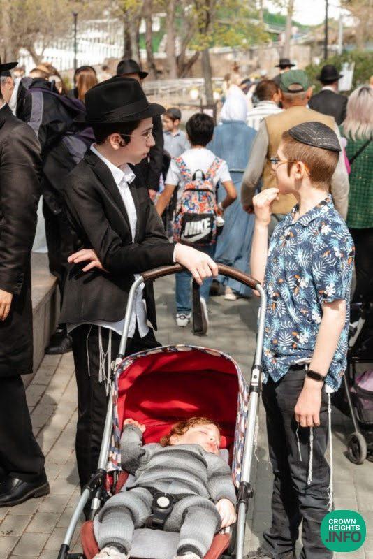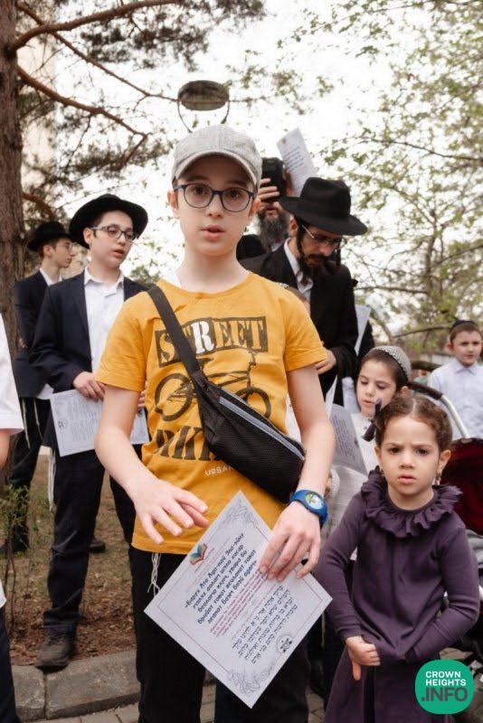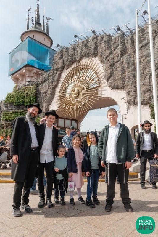 Thousands of passersby who were strolling through the zoo for their enjoyment rubbed their eyes at the unusual sight, when in front of them stood a large group of children adorned with peyos and wearing kippahs, standing in a semicircle near a fruit-bearing tree, which had just begun to blossom. The children were enjoying the sunshine that finally came that day after weeks of snow that fell in the Russian Federation, during the first part of the month of spring.