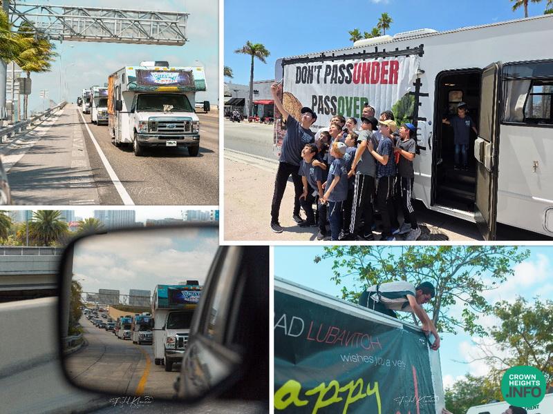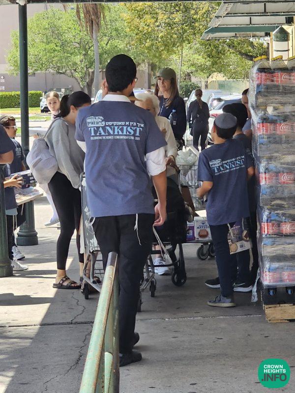 Following the parade, the tanks went out to their designated locations where they gave out hundreds of matzos and assisted many Yidden in putting on tefillin and more!