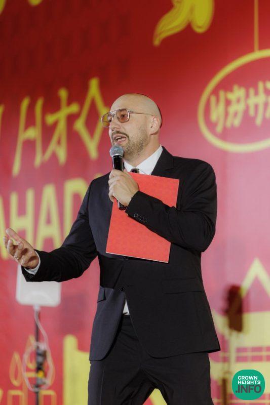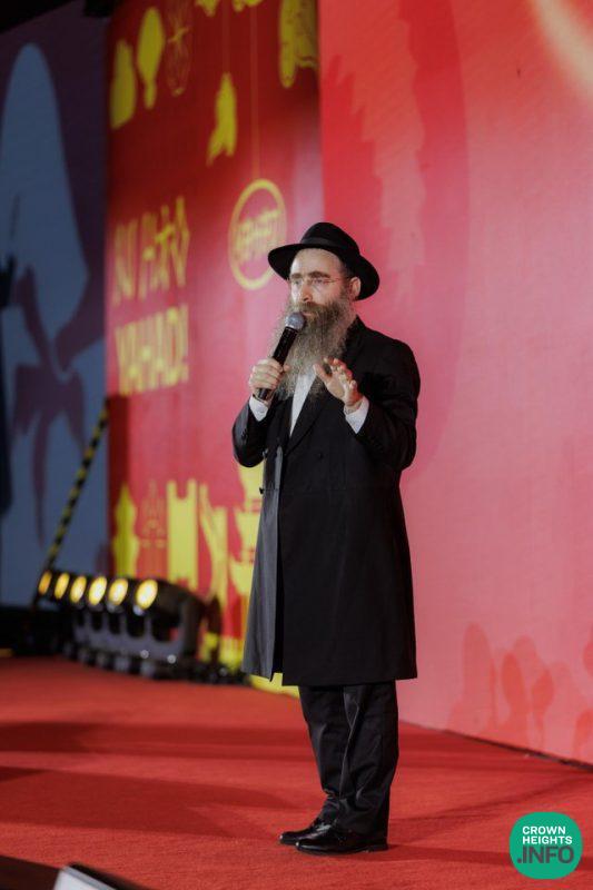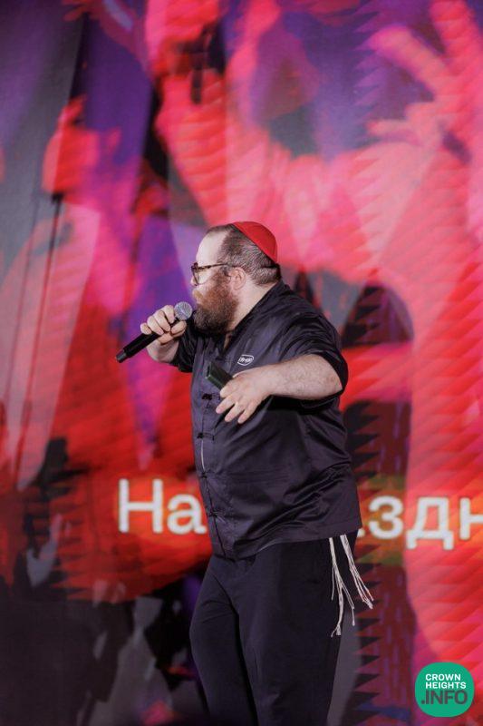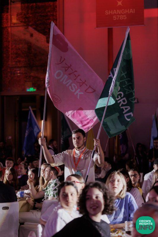 His remarks naturally transitioned into the multimedia presentation presented next that brought to life historic events, accompanied by the song “Shir HaGeulah – Hachayeni Kel,” written by the previous Lubavitcher Rebbe during that era. Following the screening, Rabbi Itzik Gorelik, the Chabad emissary and Rabbi of Kazan, took the stage and invited the other emissaries to join in singing the Chabad anthem “Nyet Nyet Nikavo.”
