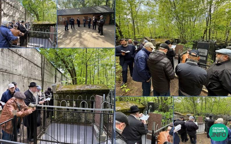 Led by the head of the Chevra Kadisha in Russia, Shliach Rabbi Moshe Tamarin, a minyan went up to his kever for the first time to recite Tehillim on his yortzeit. Kaddish was recited by Rabbi Chaim Nissan Bayer and then the Mashpia Rabbi Velvel Rapoport spoke, sharing words he had heard as a child in Moscow from his teacher, Rabbi Shneur Pinsky, who was a friend of the Gaon.