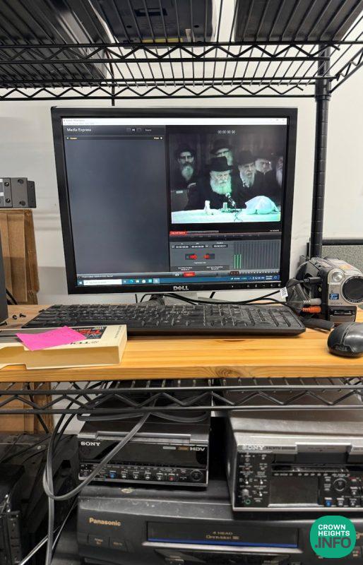 Just this past Wednesday, while sorting through old VHS tapes, Avraham discovered a tape labeled “Pesach Sheini.” Curious about the year and other details he brought the tape to the JEM offices. The JEM team identified it as the farbrengen of Pesach Sheini 5743, long believed to exist only in audio format.