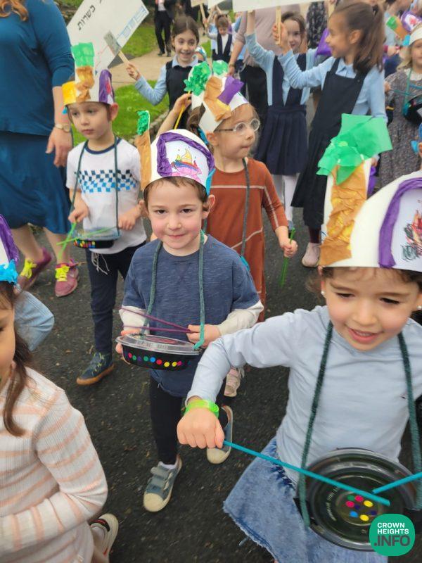 Escorted by a police contingent, and accompanied by a fully outfitted marching band comprised of kita ches, the boys and girls of Cheder paraded proudly around the neighborhood surrounding the Rabbinical College of America campus. This made a tremendous Kiddush Hashem.