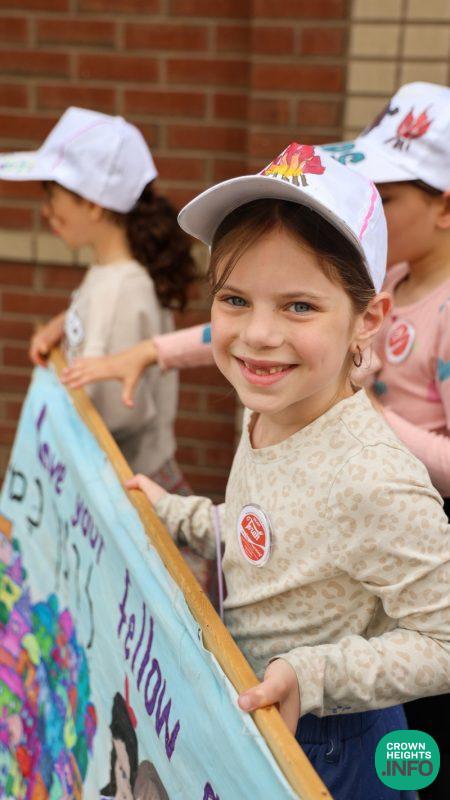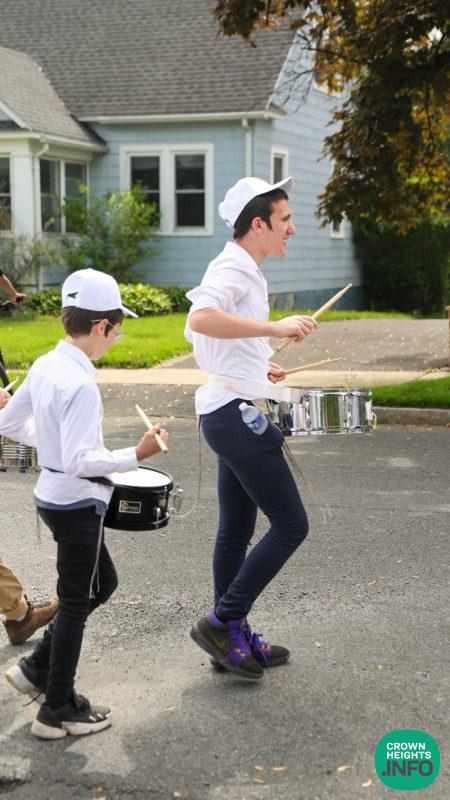 Most of our parade-goers sported white caps, many uniquely decorated in Morah Rivi’s art class. The march featured colorful old banners, a vibrant new sign celebrating our “Enjoy Torah” theme, and cheerful signs created by the Kindergarten class. Alumnus Jeremy and our Maimonides Boys Drum Corps kept everyone in step with an energetic beat that carried us all the way to the park.