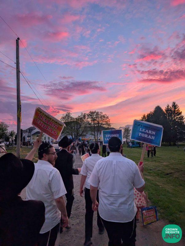 Later in the afternoon, before the bonfire, a spirited tahalucha took place along the road leading to the yeshiva. Participants marched with pride and joy in honor of Rabbi Shimon Bar Yochai, expressing Jewish unity and Chassidishe strength in a visible and uplifting way.