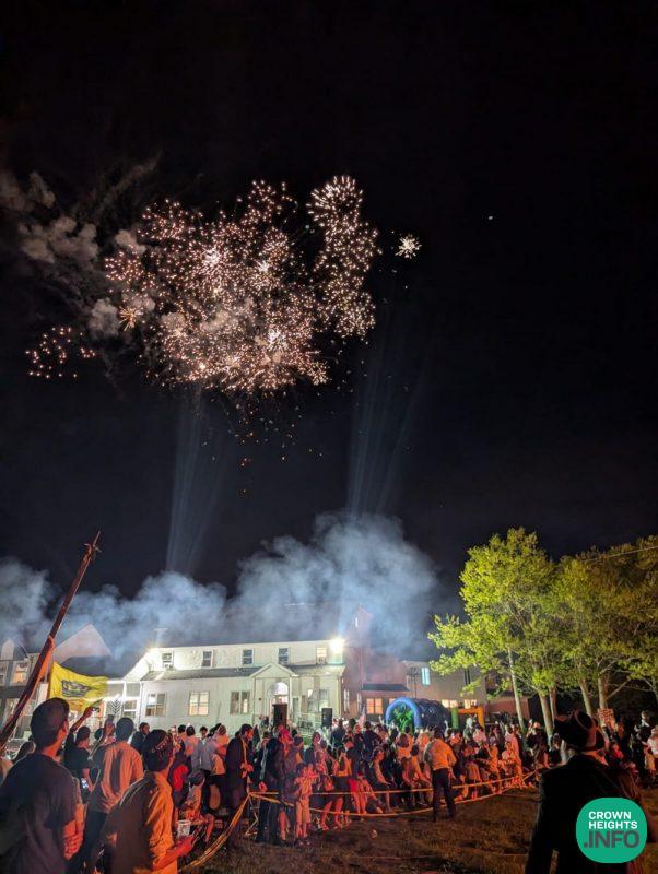 As evening arrived, a large bonfire was lit at the center of the grounds. The crowd gathered around, singing and celebrating in true Lag BaOmer spirit. A dazzling fireworks show lit up the sky shortly afterward, adding color and excitement to the festive scene.