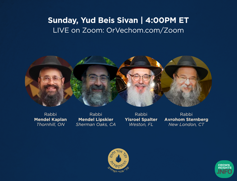 The online gathering will take place on Sunday, Yud Beis Sivan, at 4:00 PM ET, accommodating Chassidim in various time zones.