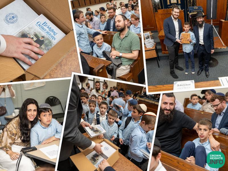 Afterward, the entire school gathered in the shul, where the “Talmid Hashana” from each class was announced, and our MBP leaders were awarded their prizes. Parents and students were treated to the surprise debut of our school choir and music video, “To Lubavitch,” followed by a special gift: a copy of our newly published book, Bridging Generations (more details to follow).