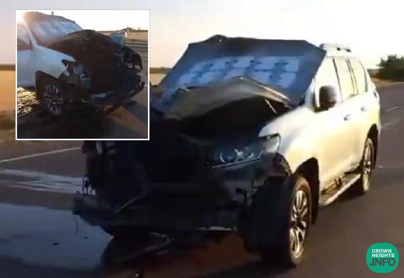 Rabbi Yosef Yitzchak Wolf, the Chief Rabbi of Kherson, Ukraine, was driving near a Ukrainian checkpoint with his family when it was targeted by a Russian drone. The drone impacted the front of the vehicle, causing extensive damage to the engine area, but caused no injuries to those inside.