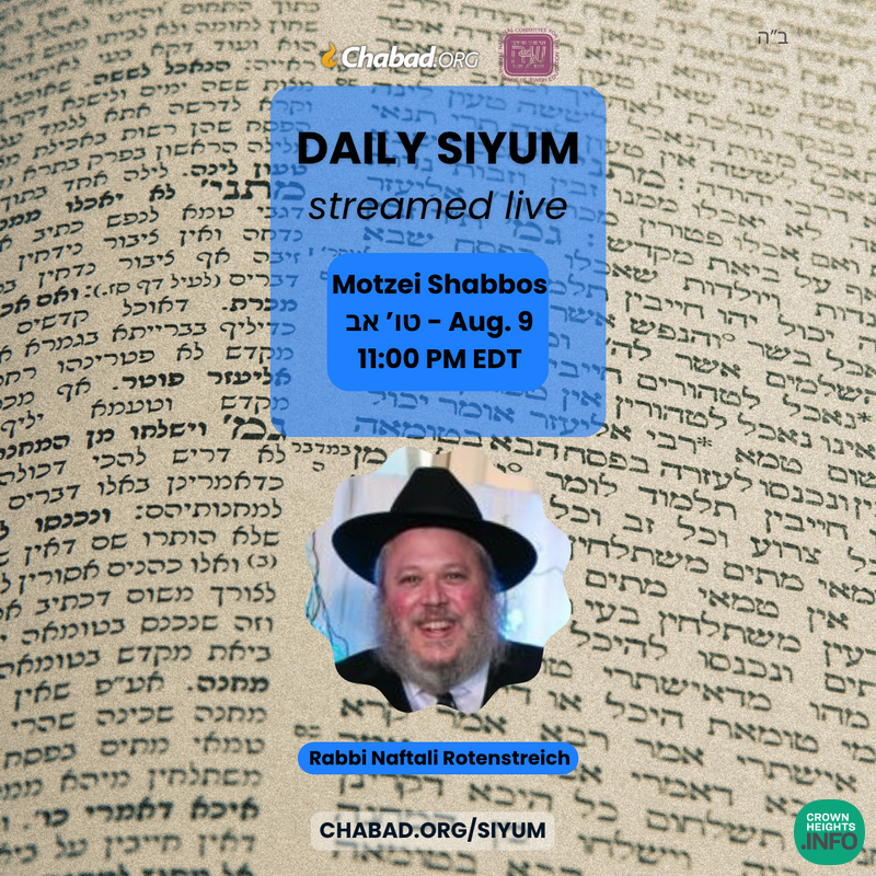 Nine Days Daily Siyum – Live Broadcast at 11:00pm