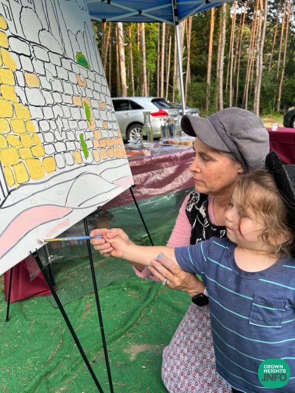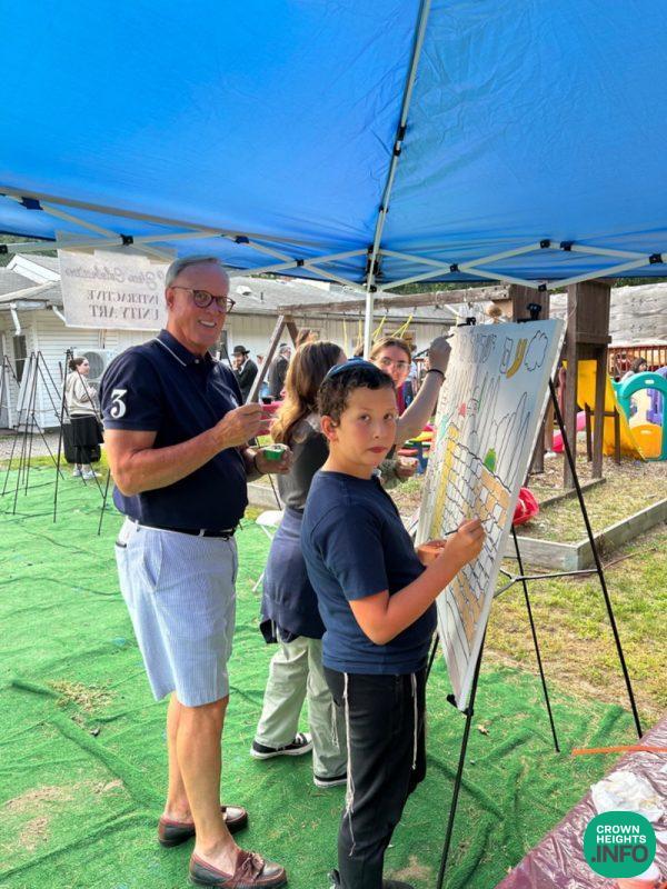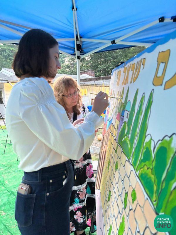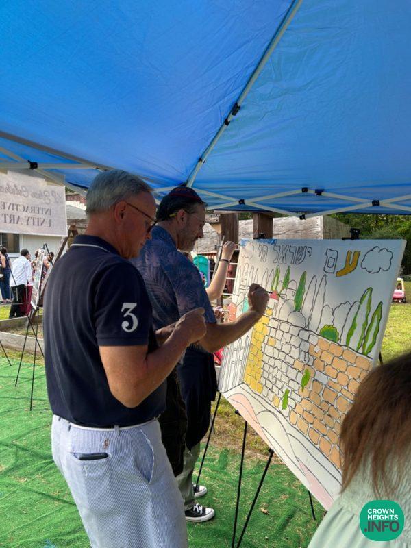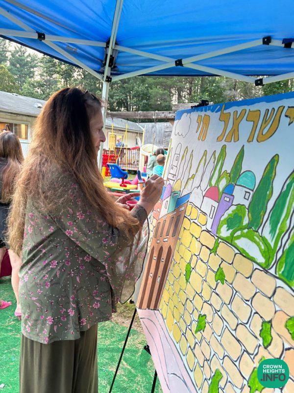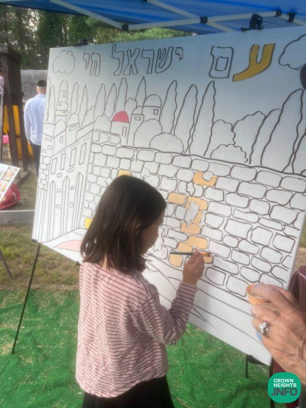 The event opened with a Chai Photo Gallery, showcasing memorable moments from the past 18 years of outreach. Photos were arranged by year on beautiful display boards. At the center of the space stood an interactive unity art project—a “Paint by Number – Am Yisrael Chai” mural of the Western Wall, designed by Rivi Bahir and color-coordinated under the guidance of Alyla Goldman, symbolizing unity, that everyone counts, their effort and unique color they paint and only together we complete our mission.
