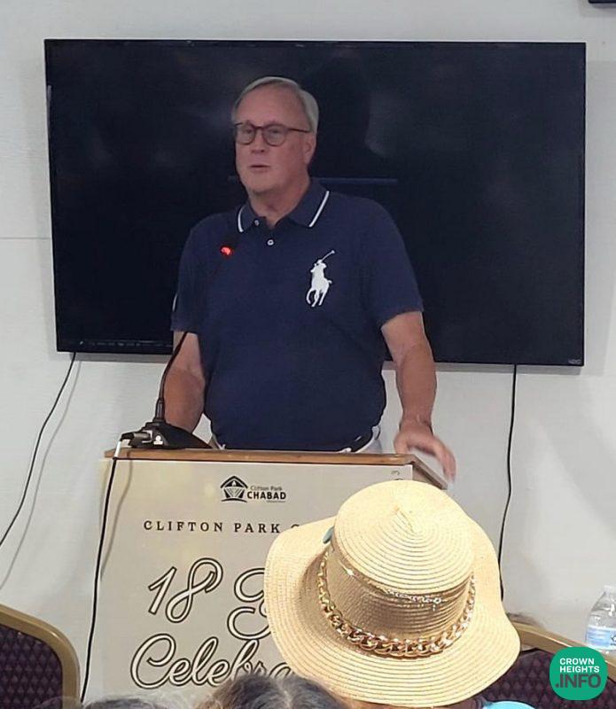 Though Scott Roth could not attend in person, his message was read aloud: he described Chabad as “the eye of the storm”—a place of peace and calm even as the world swirls with chaos. He conveyed his heartfelt appreciation to Chabad Hebrew School, where his grandchildren attend and he and his wife Clara, volunteer.