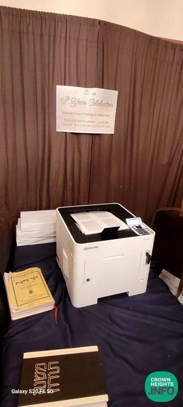 The highlight of the evening was the historic local printing of the Tanya—the very first Torah book ever printed in Clifton Park!