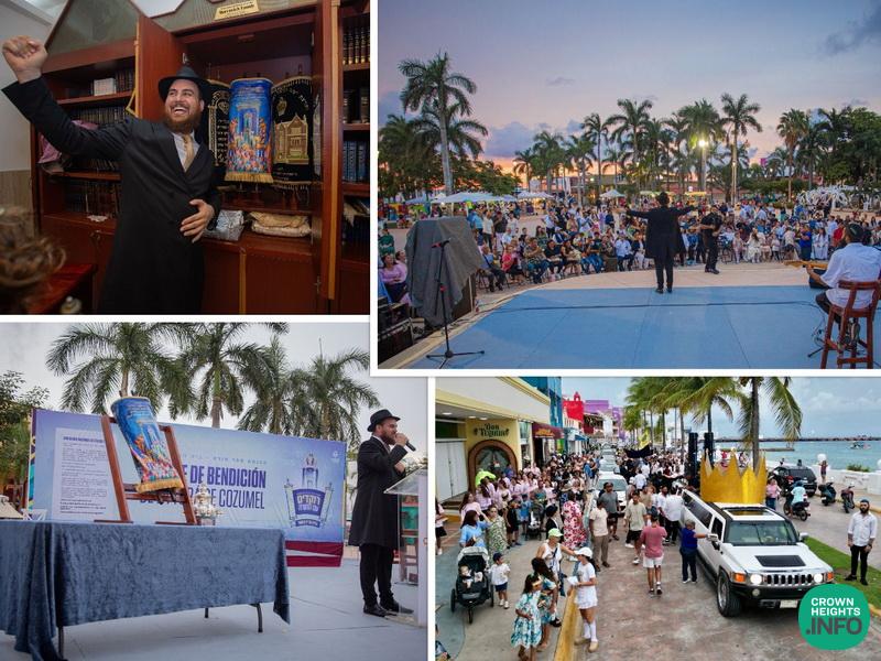 Last night, Sunday, a special Torah dedication took place in the main square of the tourist island of Cozumel, Mexico, for the local Chabad House.