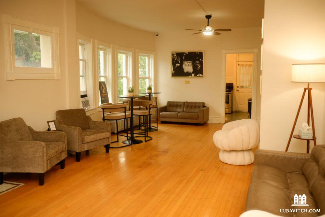 Outfitted with sofas, Wi-Fi, a fridge stocked with drinks and snacks, and a game room with a PlayStation, the lounge is a comfortable space for students. “We also have a classroom for one-on-one learning and weekly Torah courses — which opens up into the lounge for larger events,” said Rabbi Nigri.