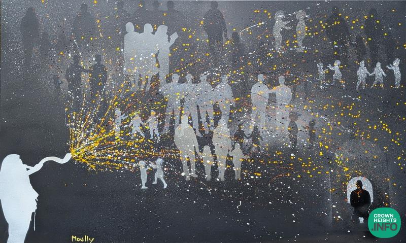 Each year, after Chatzos on the day of Rosh Hashana, Moully pours his heart and soul into a Shofar painting, attempting to visualize the new energy of the upcoming year.