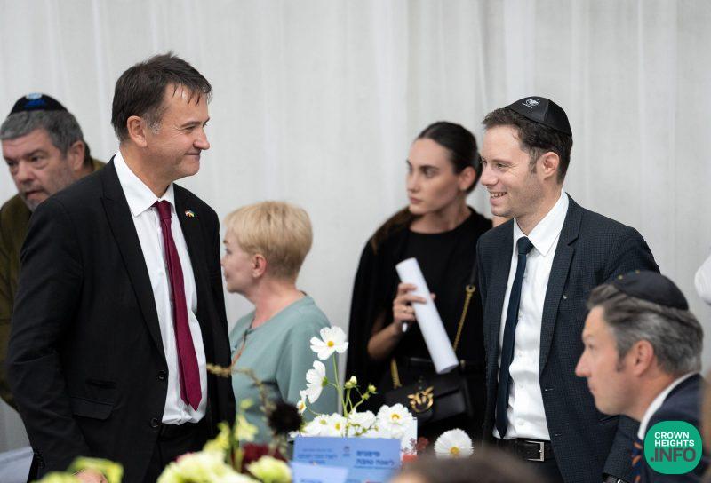 On the first night of Rosh Hashanah, a central festive meal was held under the leadership of Kyiv’s Chief Rabbi, Rabbi Yonatan Markovitch, with the participation of ambassadors from across the world, including representatives of Spain, Poland, Austria, Israel, Azerbaijan, the Czech Republic, Latvia, France, England and the U.S. Consul. They were joined by Ukrainian parliamentarians, the head of military intelligence, and representatives of the president, who at the time was in New York for the UN General Assembly.