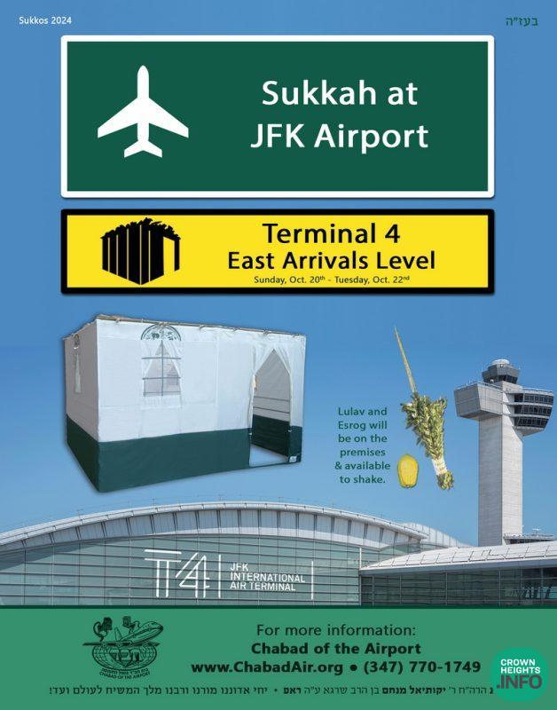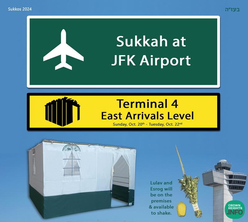We are pleased to announce that once again passengers at JFK Airport this Chol Hamoed will be able to take advantage of a Sukkah on the way to their flights. The Sukkah is a project of Chabad of the Airport, which has been dedicated to serving the needs of Jewish travelers at New York’s airports for more than 50 years.