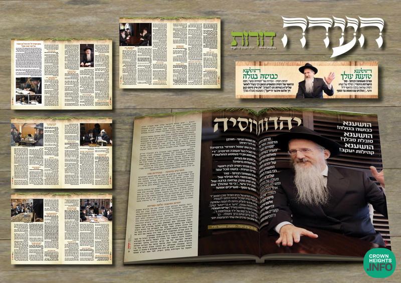 The conversation, spread over ten pages, is published prominently in the supplement, amongst a number of holiday conversations and interviews with various Rabbanim. It is accompanied by photos of meetings between Rebbes and Rabbis from the Charedi community, along with the Chief Rabbi.