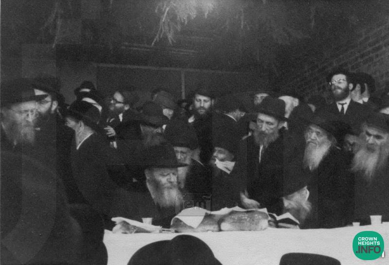 – The Rebbe’s Motzei Yom Kippur meal in the Previous Rebbe’s apartment