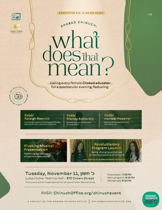 The event will take place on Tuesday, כ’ חשון (November 11) at the United Lubavitcher Yeshiva Hall, 570 Crown Street, with virtual access available for out-of-town participants.