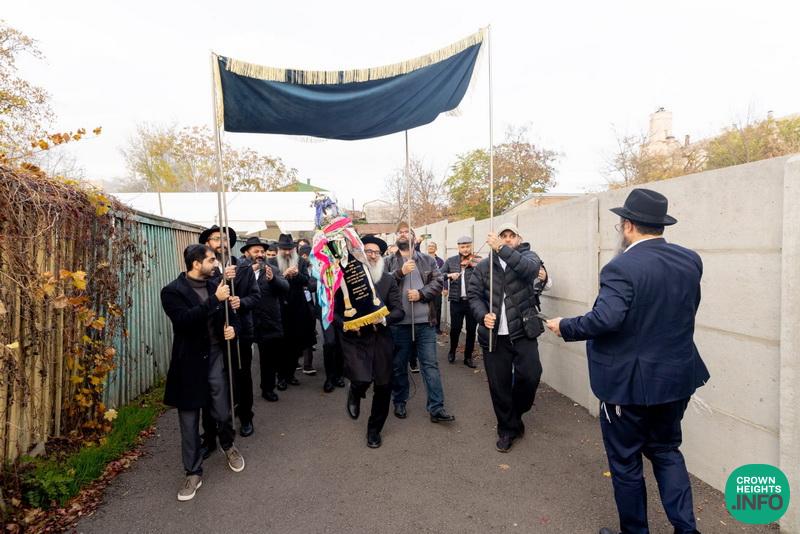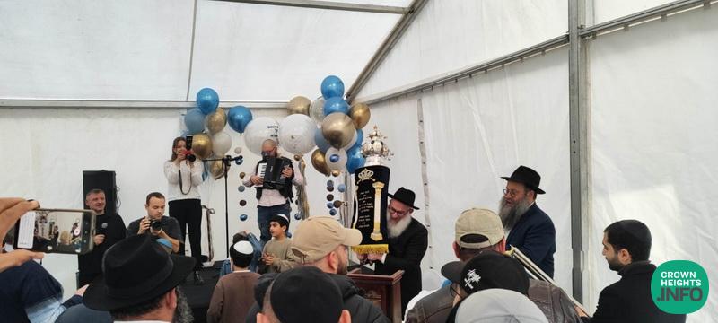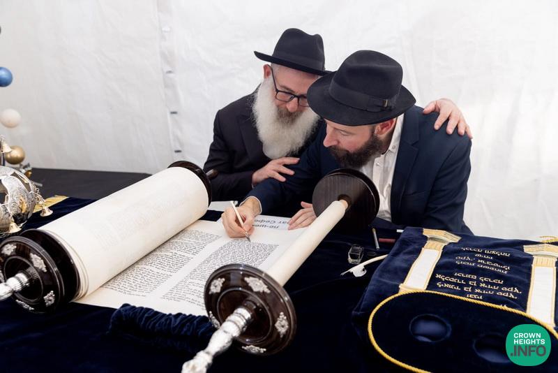 This Torah, written and donated by the family of the Lubavitcher Rebbe’s emissaries to the city — Rabbi Arye Leib Tkach, Rebbetzin Judith Nechama Tkach, and their children Shmuel, Aliza Simcha, and her husband Natan Benzion — was dedicated in memory of their father and grandfather, Izia ben Leib Tkach, and his sons Leonid and Alexander.
