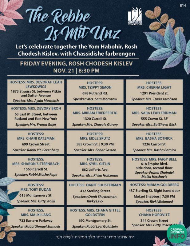 N’shei Chabad To Host 18 Rosh Chodesh Farbrengens For Women Across Crown Heights N’shei Chabad will be hosting eighteen Rosh Chodesh Kislev Farbrengens across Crown Heights this Friday night.