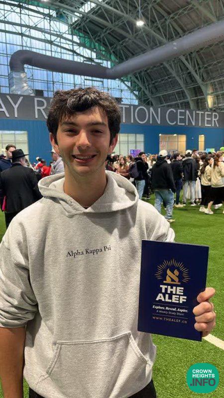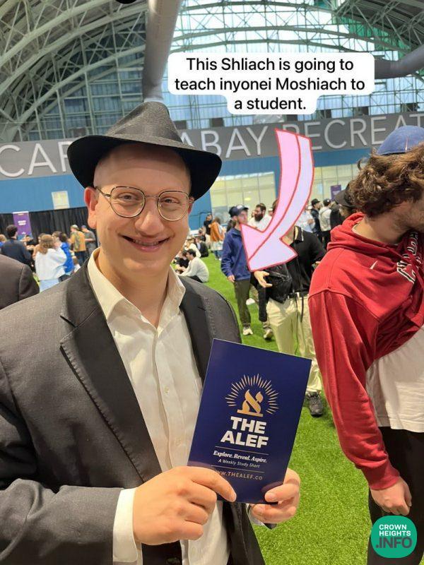 Throughout the Kinus weekend, a booth at the Mosdos Fair on the Women’s Plaza at 770 invited participants to pick up a printed copy of The Alef to learn Inyonei Geulah u’Moshiach with someone in their community.
