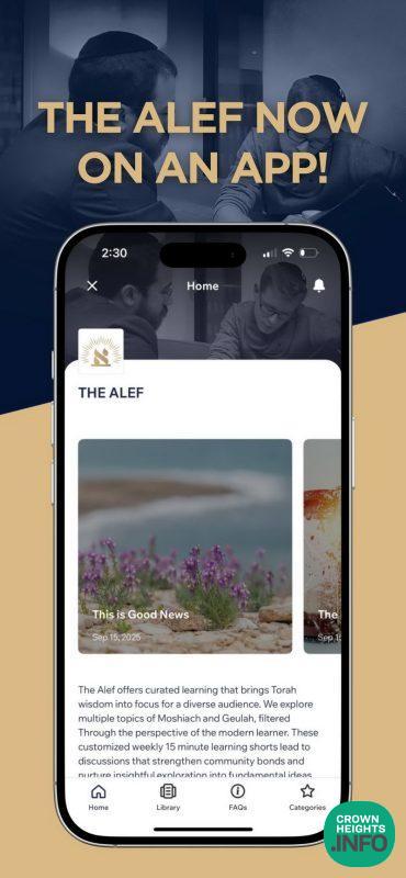 “The Alef was created to help every Jew bring Moshiach learning into daily life,” says Rabbi Levik Gourarie, co-founder of The Alef series. “With this new app, the Rebbe’s vision, to live with Geulah becomes more accessible than ever.”