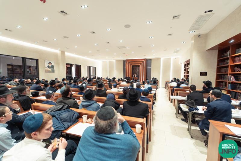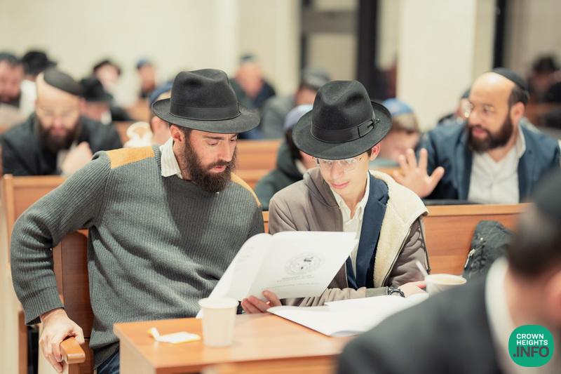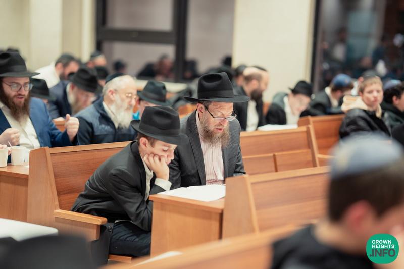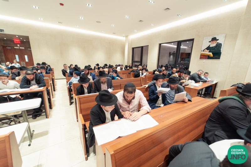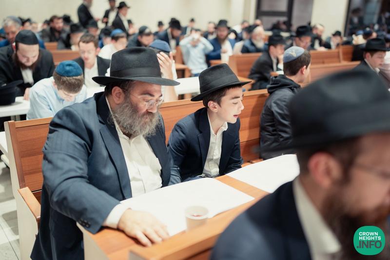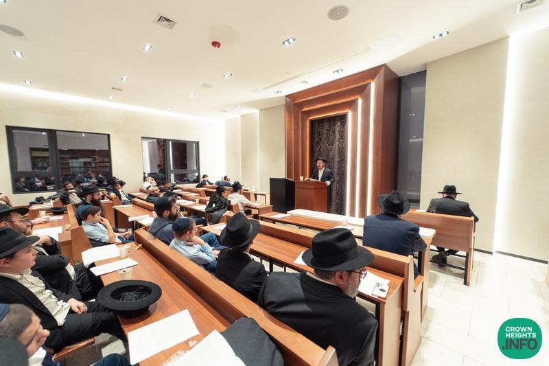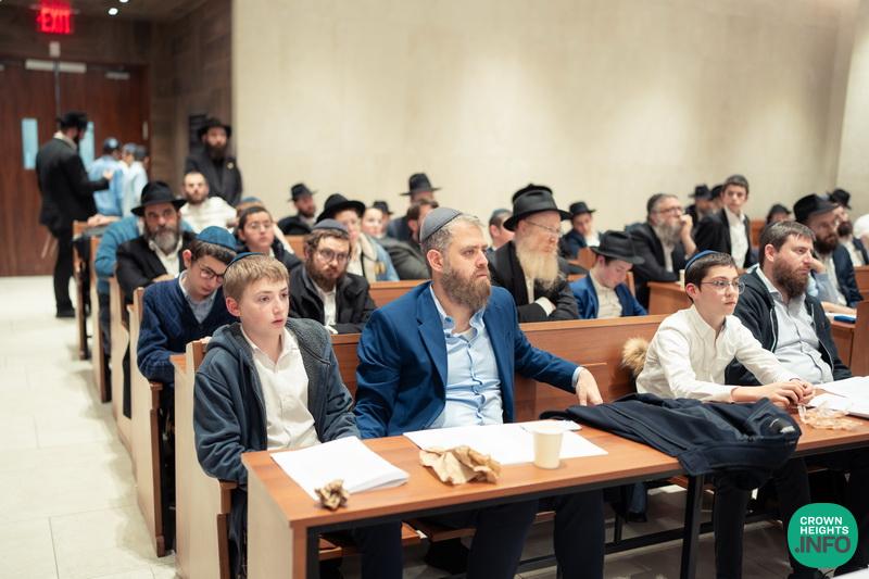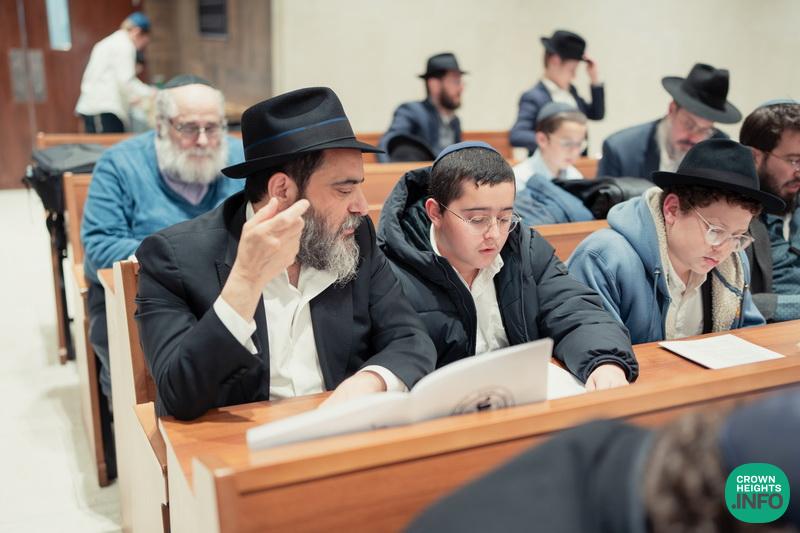 In honor of Chof Cheshvan, the birthday of the Rebbe Rashab and the founder of Tomchei Temimim, fathers of the Mechina L’Mesivta talmidim joined their sons for a special evening of learning in the Shul of Tomchei Temimim.