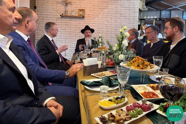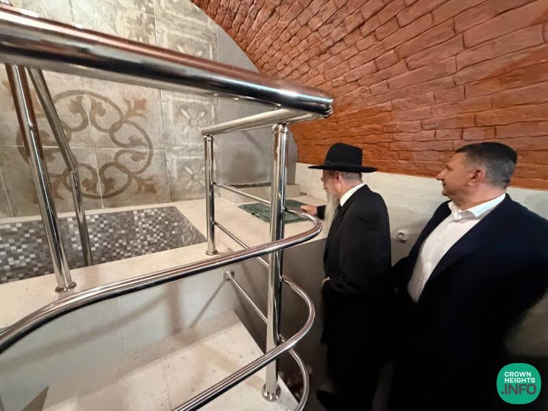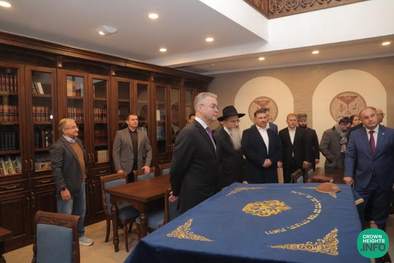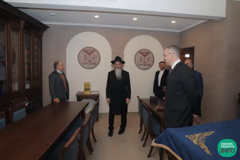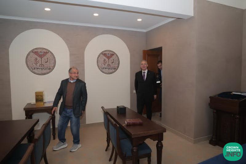 The district governor, the mayor, the city’s dignitaries and community leaders, led by the community’s president, Rabbi Akiva Khudainatov, welcomed the esteemed guest and showed him around the two historic buildings. They were extremely impressed by the magnificent results, restoring the crown to its former glory, which was made possible thanks to the support of the government as well as philanthropist Mr. Naum Babayev, a native of the city, along with additional donors from the community’s friends.