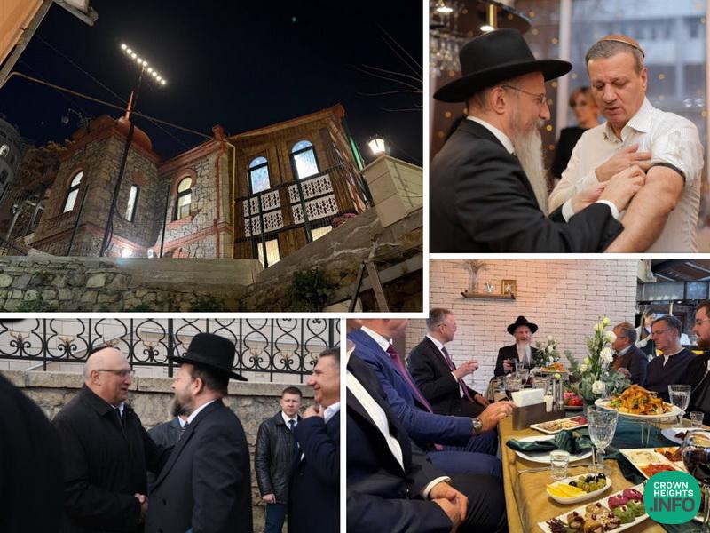 The district governor, the mayor, the city’s dignitaries and community leaders, led by the community’s president, Rabbi Akiva Khudainatov, welcomed the esteemed guest and showed him around the two historic buildings. They were extremely impressed by the magnificent results, restoring the crown to its former glory, which was made possible thanks to the support of the government as well as philanthropist Mr. Naum Babayev, a native of the city, along with additional donors from the community’s friends.