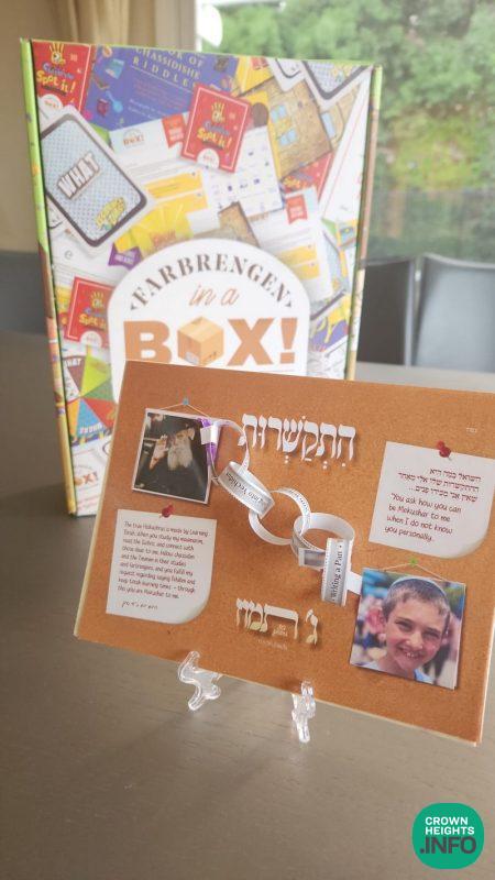 Throughout the year, children receive boxes before each major Chassidishe Yom Tov, with activities tailored to each celebration’s unique theme. Each box includes an interactive written farbrengen, story, and nigun, customized games, art projects, and prizes. From learning nigunim and their origins to playing games that teach Chassidishe minhagim, the boxes give children an authentic farbrengen experience wherever they find themselves.
