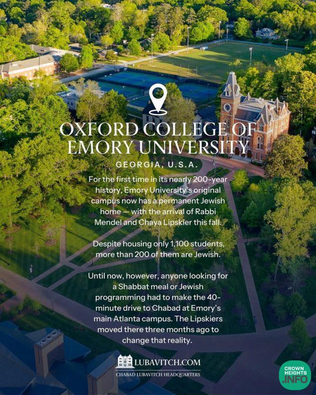 For the first time in its nearly 200-year history, Emory University’s original campus now has a permanent Jewish home — with the arrival of Rabbi Mendel and Chaya Lipskier this fall.